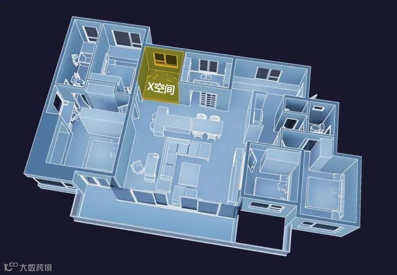 旭辉在巨厅旁边,书房、厨房、阳台、玄关等都打通之外,又新增了一个“X空间”。它可以是任何主题,自己喜好的事物、没有实现的梦想,都可以放在这个空间。