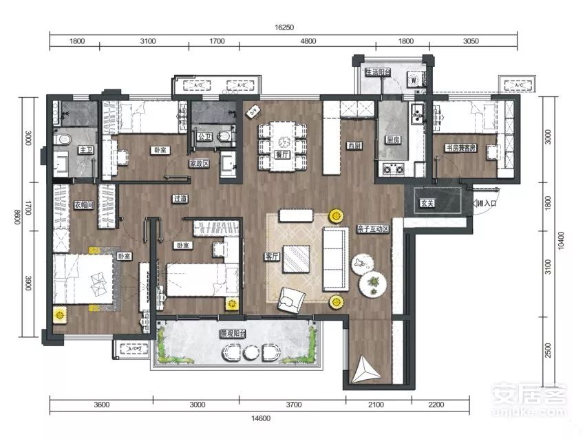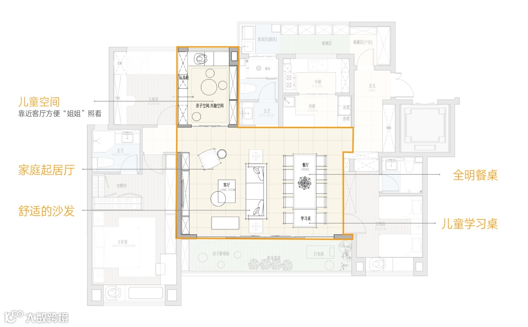 保利的一款全生命周期的户型中,同样关注适幼化细节: