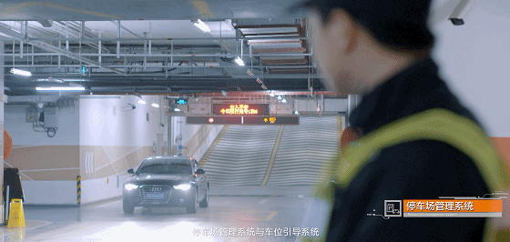 龙华金茂府的车库,在用铝合金打磨而成的吊顶缝板中间藏有灯带。业主的汽车通过车牌自动识别进入地下车库时,系统会识别车辆所属业主及居住的楼栋信息,通过灯带指引业主到离该楼栋最近的空车位停车。