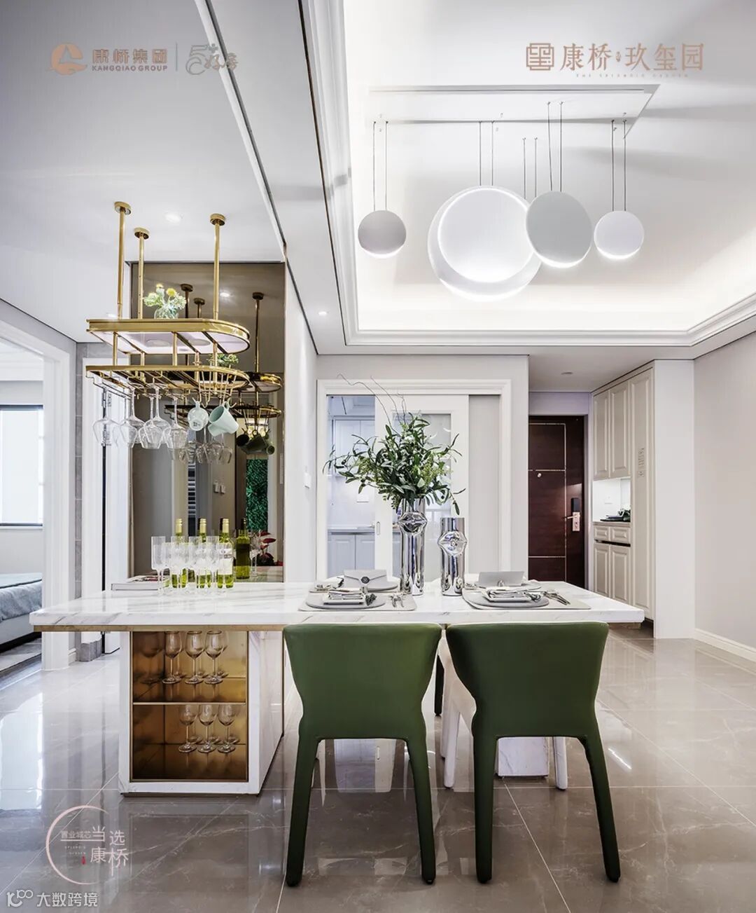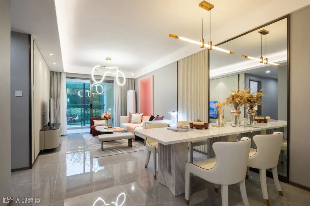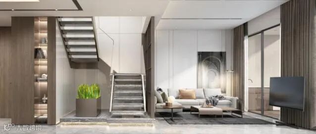 一层空间,作为家庭生活主场,采用餐客一体化及大横厅设计,客厅、餐厅部位均做无梁大板,内部不露梁,以实现更大的采光面和更好的通风效果,提升舒适度及品质。