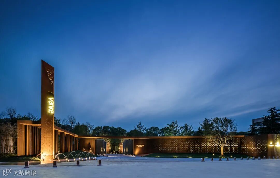 项目售楼处入口处参照传统夯土墙的手法制作景观墙。采用当地黄土、红黏土配以当代工艺制作出富有大地肌理朴实、厚重的景观墙。