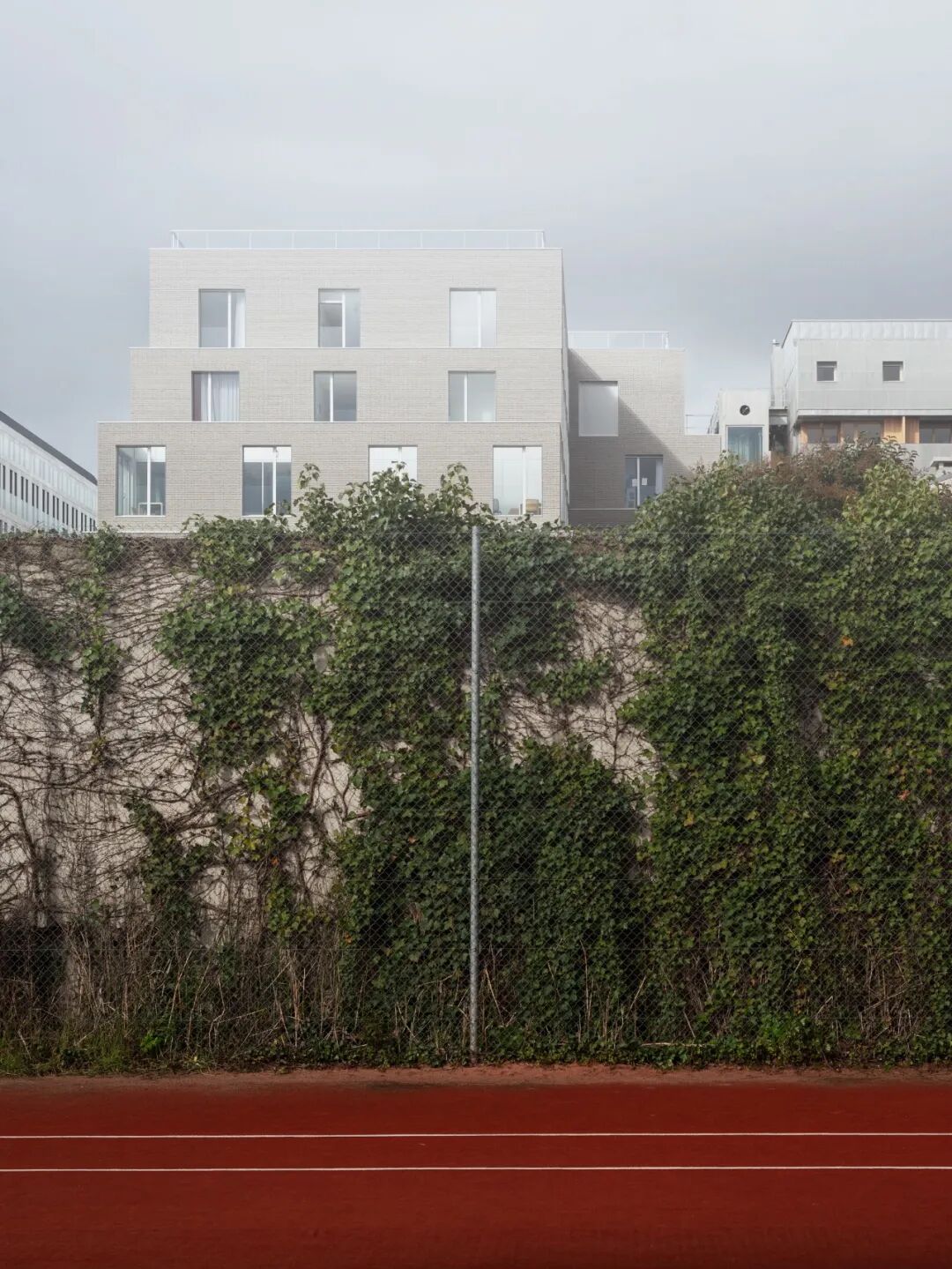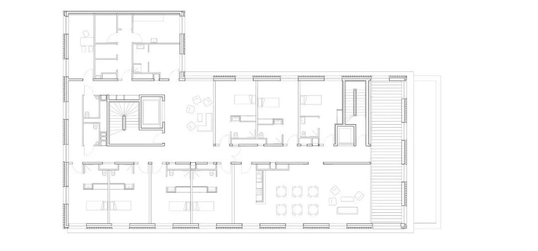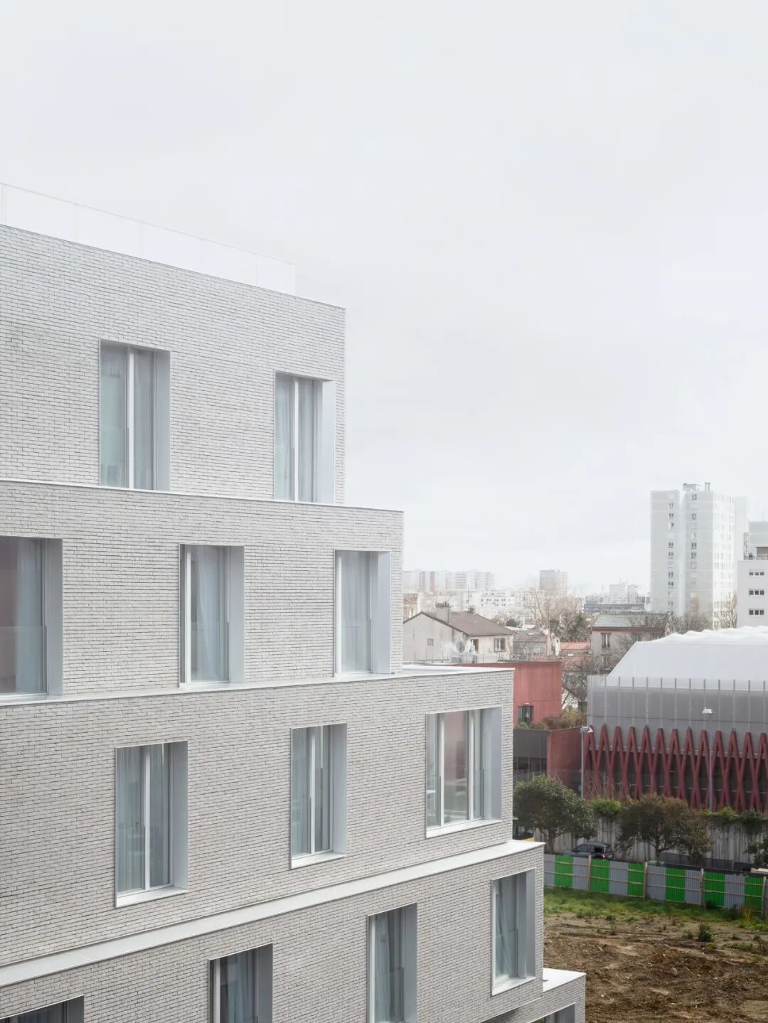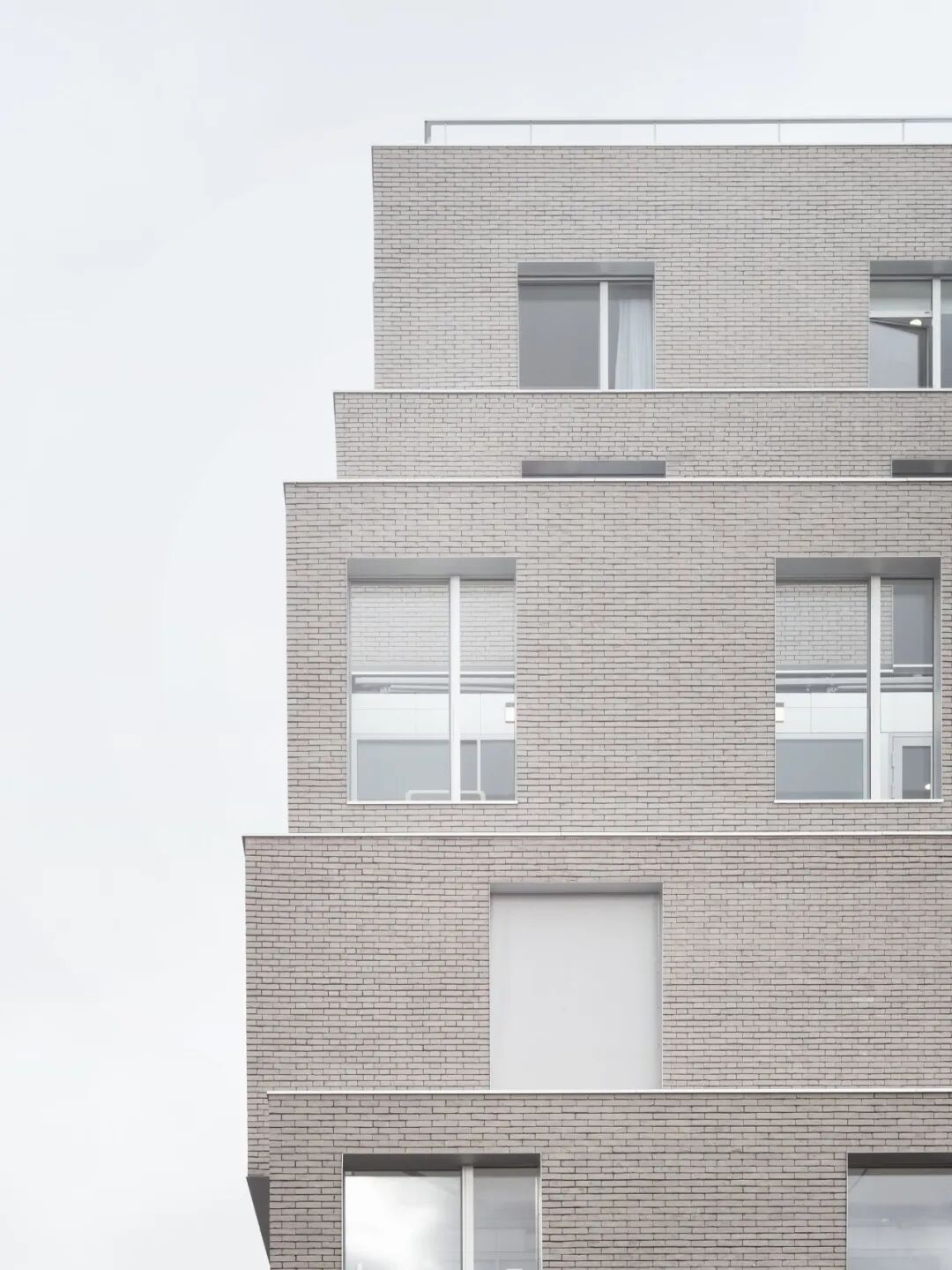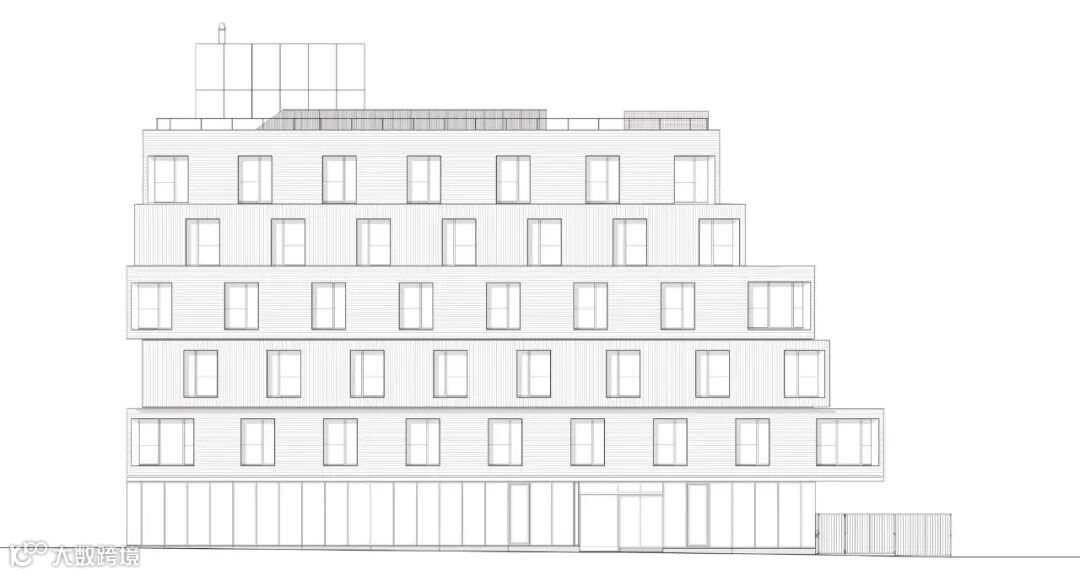我们想象了一个朝南的阶梯式建筑,让光线进入内院,其体量延伸、后退,并在交错的窗户网格中产生滑动变化。外立面向城市慷慨地开放,通过公寓的大户型窗户和公共区域的大城市窗户。