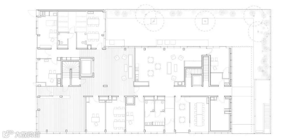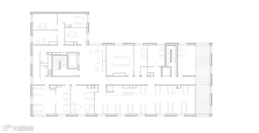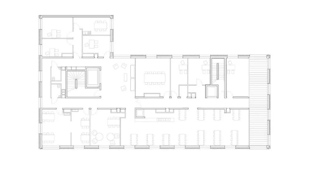 建筑围绕两个流通核心组织,主要核心位于北部,次要核心位于南部。这种功能安排既响应安全约束,也响应使用灵活性的需要。