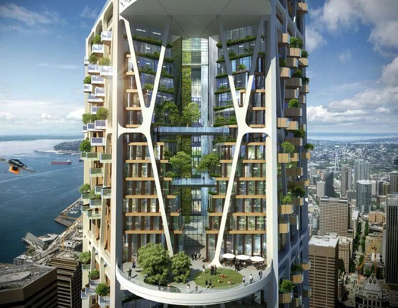 这个400米高的概念被设计在西雅图市中心的一个地块上,重新定义了在嗜生物环境中生活、工作和休闲的类型,目的是减轻对城市和密集城市生活的负面印象。