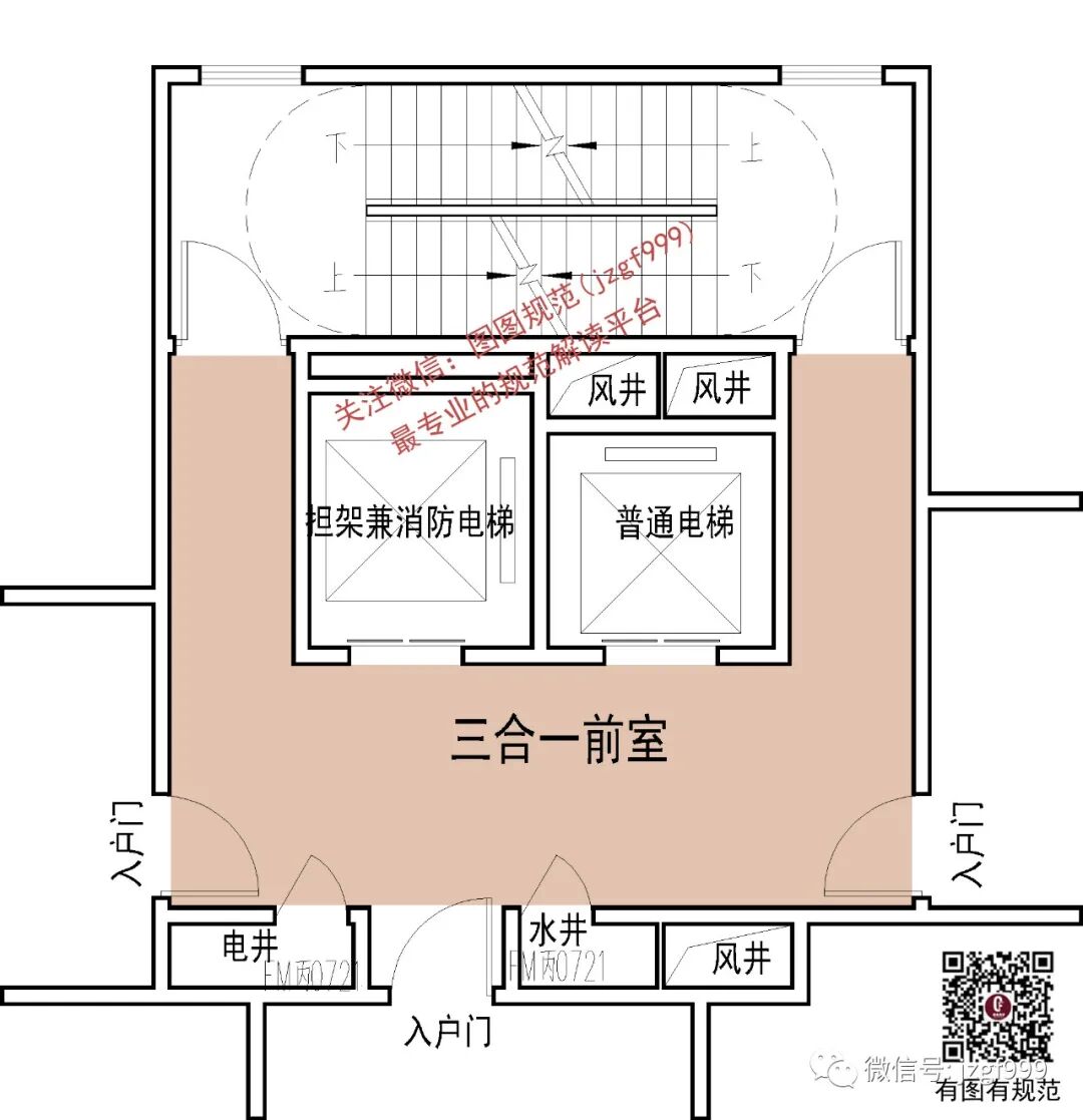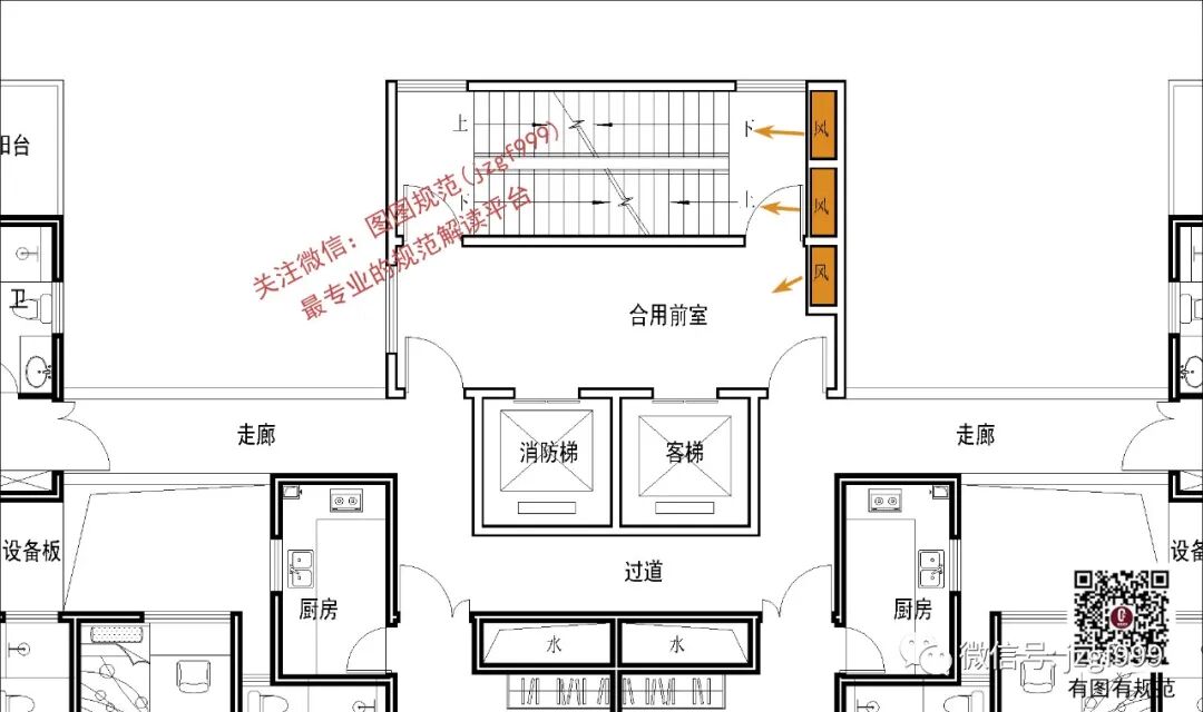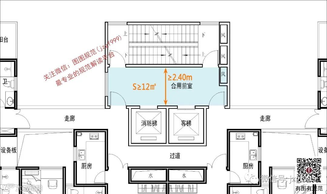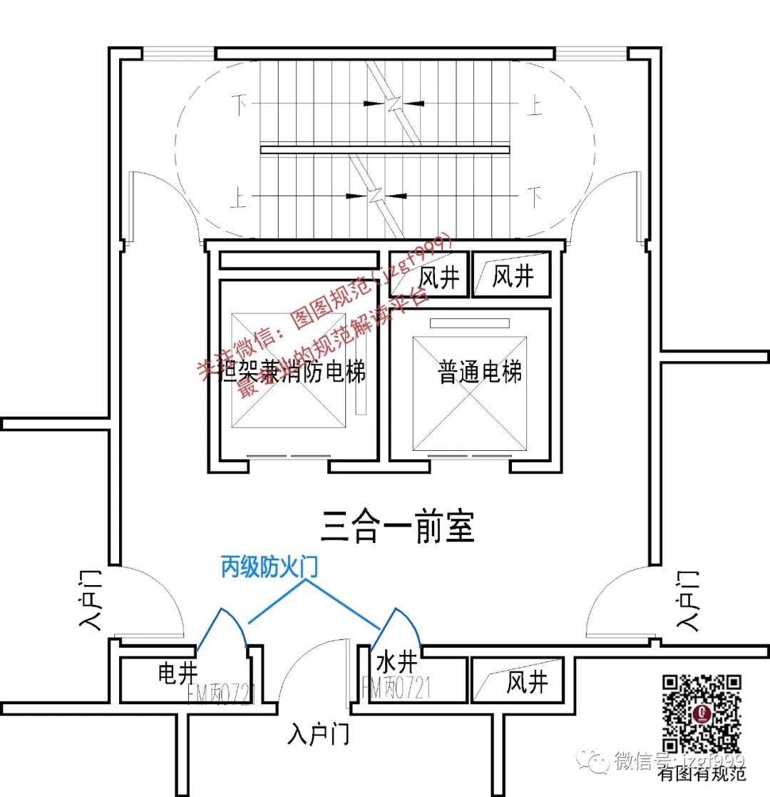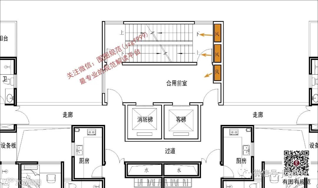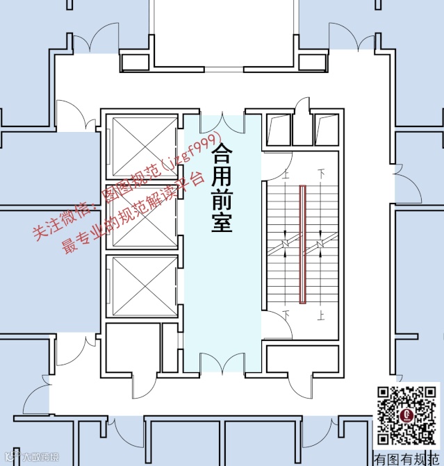 图图解读:三合一前室,仅适用于剪刀梯,普通楼梯不允许共用前室。