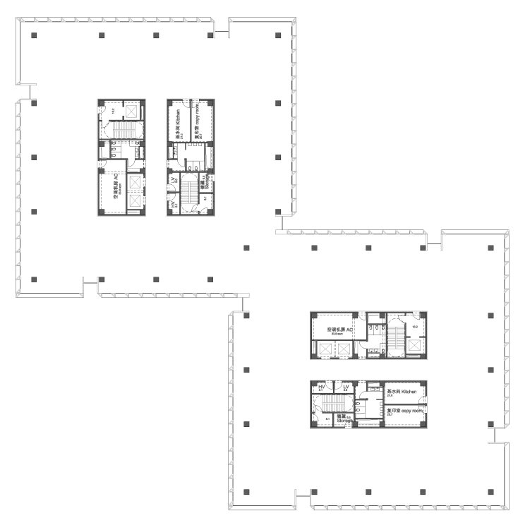 设计按照办公空间围绕核心筒布置的逻辑,将规整体块进行切割、抬降等一系列操作,形成类似于“风车”的体量组合。由此,在自然而然区分了不同的空间,高效地满足不同使用功能的同时,增加空间丰富性。
