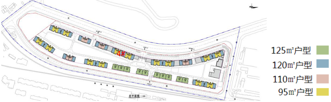 分析项目住宅户型配比,选取项目产品占比的最大的户型4#楼进行外围护结构节能设计计算模型,户型分布平面如下:
