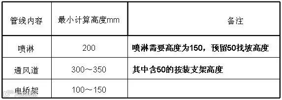 ★设备管线常用计算高度: