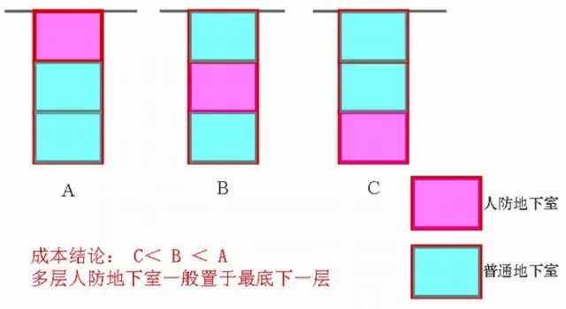 多层人防地下室的合理位置: