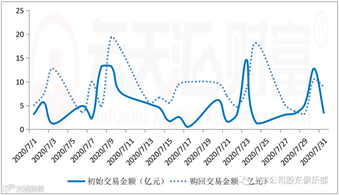 区分交易所来看,7月份上交所场内质押初始交易金额为79.87亿元,初始交易金额相比6月份增加45.69%,购回交易金额101.44亿元。上交所7月份股票质押融资净流量状态由5、6月份的净流入转变为净流出,净流出金额达到21.58亿元。