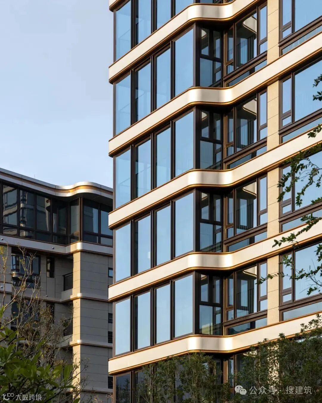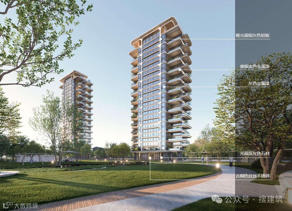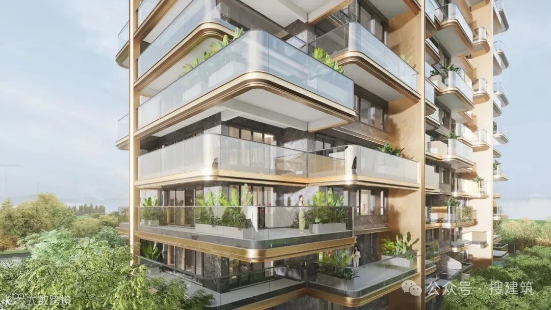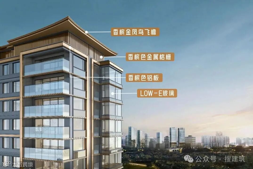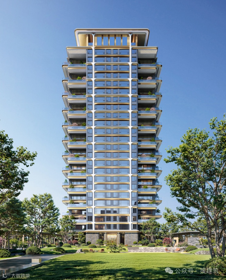 豪宅立面偏爱「香槟色」,尤其香槟色铝板,它所散发出的色泽光芒,无疑是对建筑外观的一种精致提升,是骨子里的奢华气质。