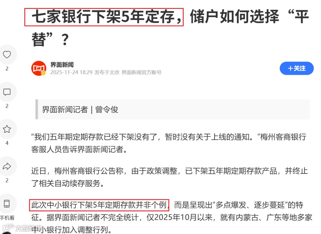 最近你可能听身边人说起:有些银行开始下架5年期定期存款了;
