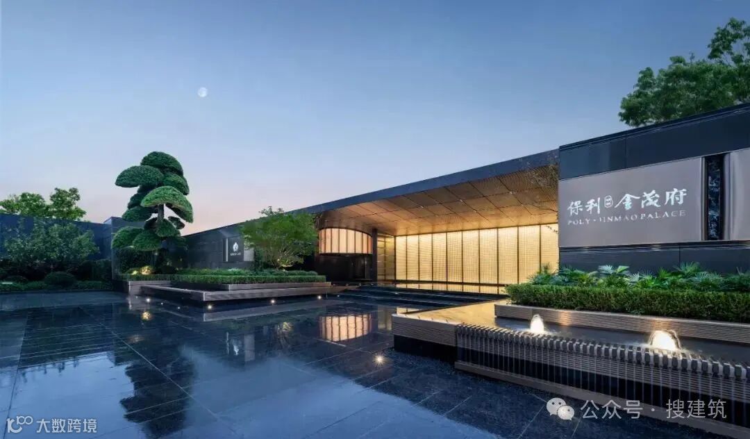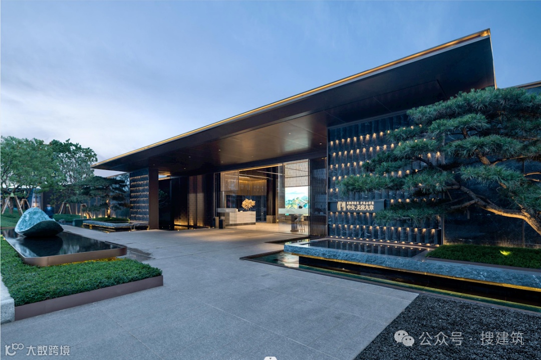 设计上,酒店式落客前场“一松一石两朴”照映造景(迎客黑松+中国黑山石+朴树),寥寥几笔勾勒出一幅雅致的禅意画卷,再配合镜面水景的设计和项目LOGO,共同营造出豪华酒店式归家体验。