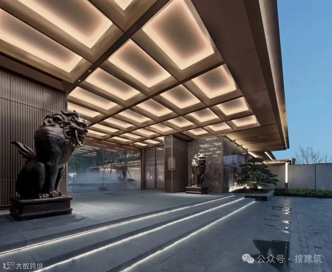 在挑檐式入口设计中,需综合考虑功能、空间、材质、细节等多个方面,才能营造出具有仪式感和尊贵感的入口空间。