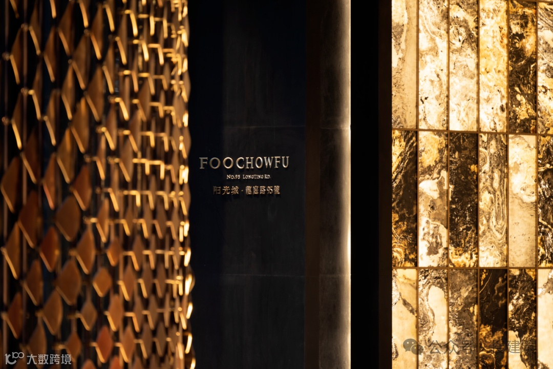 门头中心是以3333片龙鳞片组成的铜制龙鳞柱景墙,以福州人最喜欢的“三生万物”之“3”通过螺旋上升的结构排布,恍若一条巨龙扶摇直上。