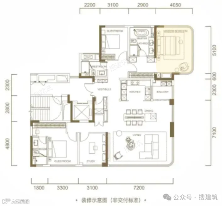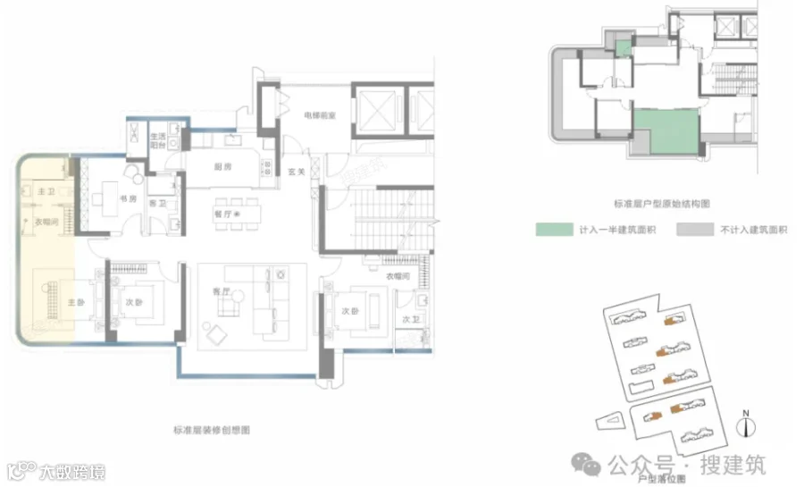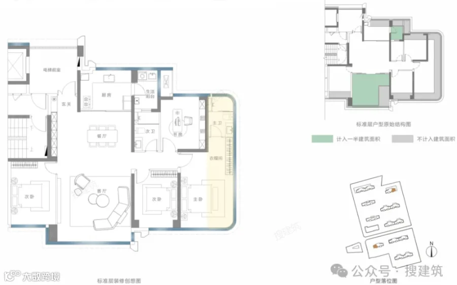 高改面积段,必然有超大公区、小家化主卧、双套房、社交餐厨等配置,这些是市场这种户型的基础要求。