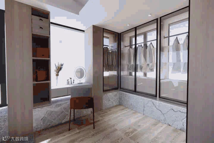 独立环廊式衣帽间延伸出居住空间无限可能的一种,营造奢华精致的高级生活体验。