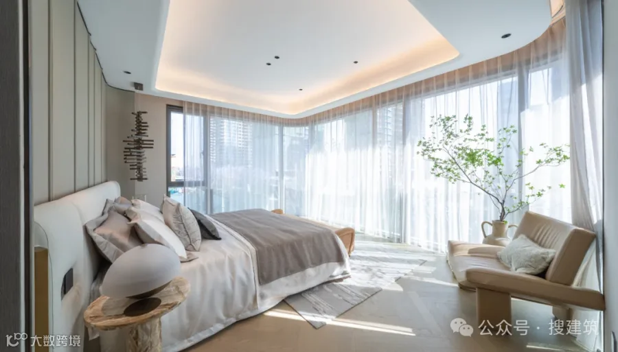 对于一些横厅或者双采光面边厅的户型,“全景舱”卧室的出现最大程度地弥补了高改人群对于视野的追求。