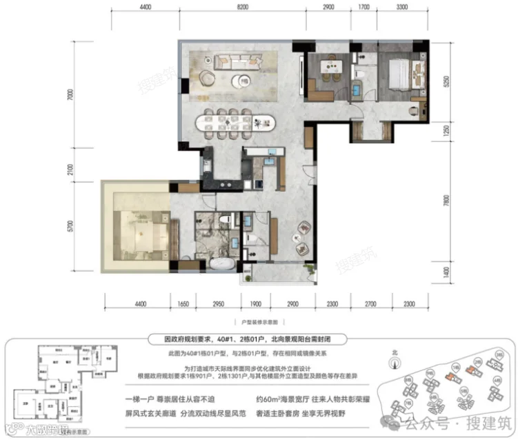 仁和春天29号院260平楼王更是创新的蝴蝶型户型(GAD操刀),前后双空中花园,360°环幕视野。