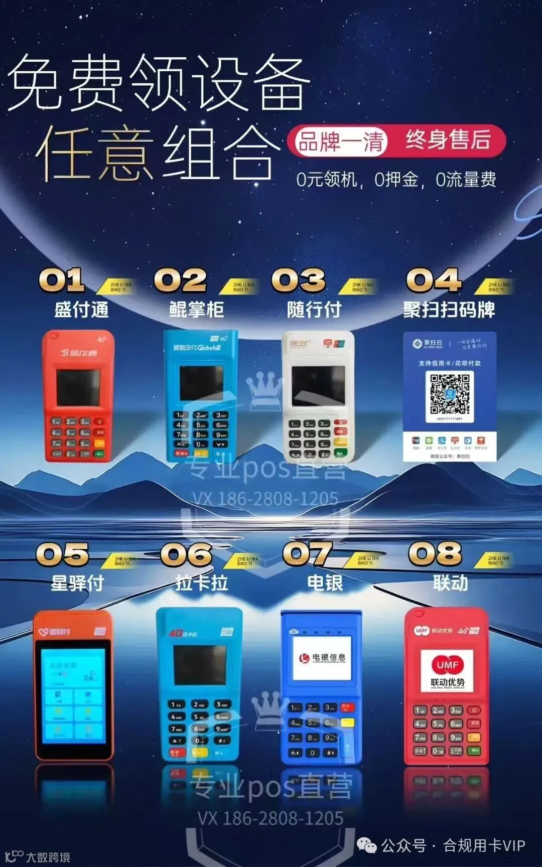 支付公司官方产品:用户福利,免费领取(终身售后:刷卡0.6%扫码0.38%;无押金免流量费,无秒到任何费用)
