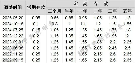 三、2022年至2025年金融机构人民币存款利率调整情况