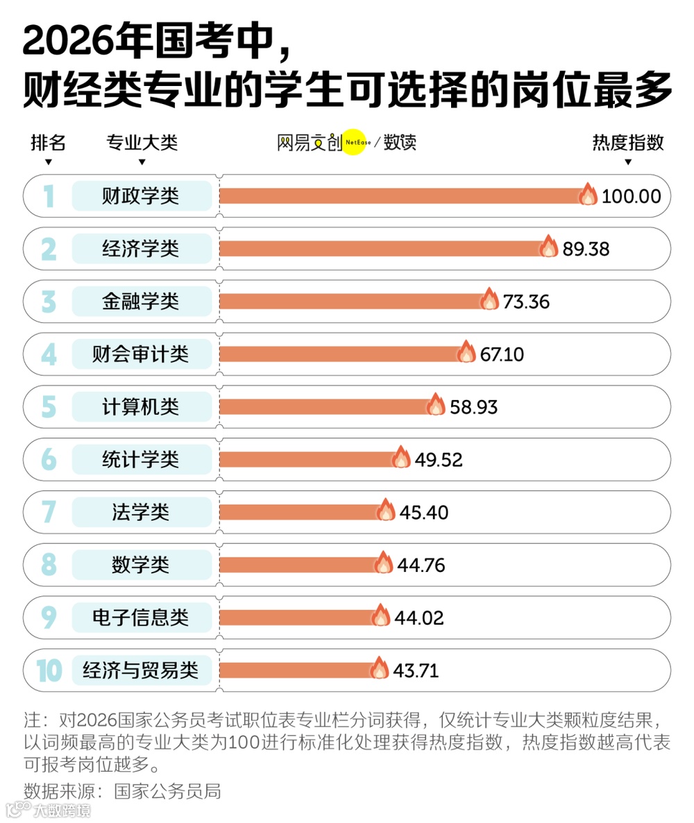 专业分布上,财经类相关专业可报考岗位最多,主因税务系统为招聘主力。2026年税务系统拟招25004人,占总招录人数的65.6%,较上年提升六个百分点。