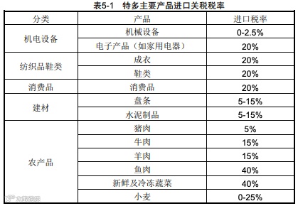 纺织品:关税税率为15%-30%;增值税为12.5%,通常原材料进口税率较低