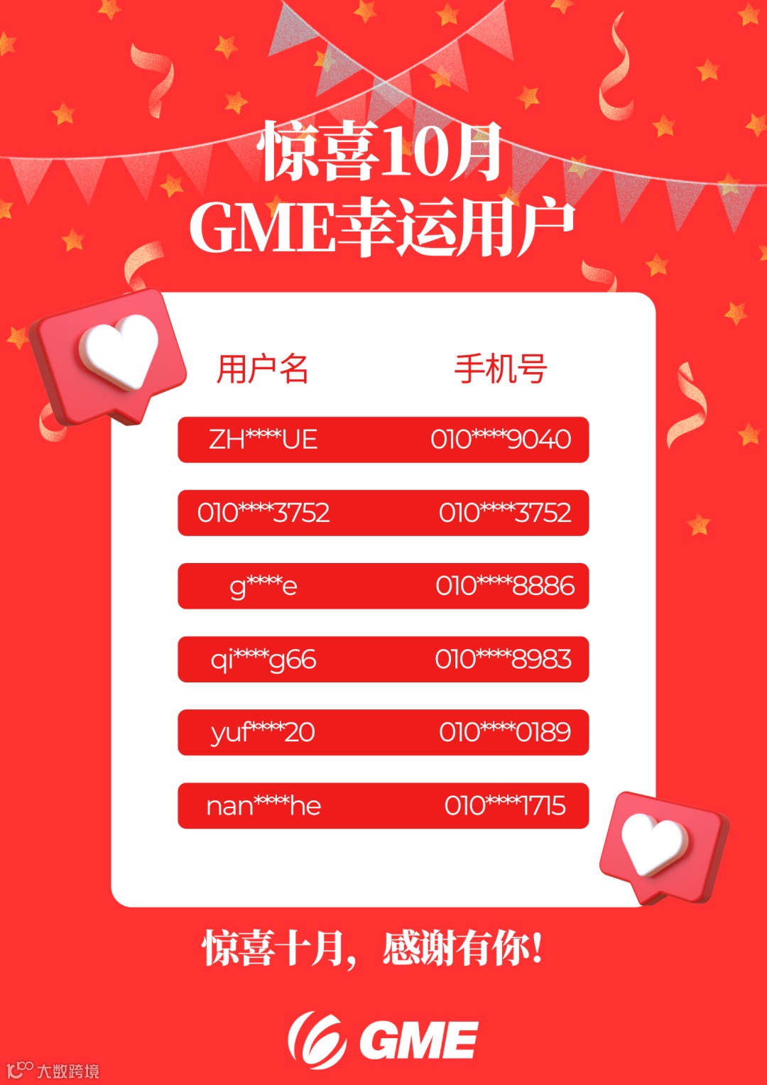 返现金额将于下周起陆续发放至您的GME钱包,请及时查收~
