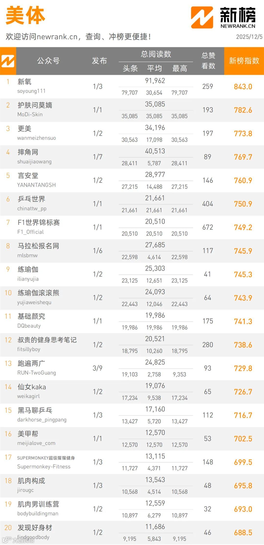 新媒体,找新榜。用数据读懂新媒体,这是新榜旗下用于发布各平台榜单的专用账号。更多详细数据请移步 「newrank.cn/...」- http://www.newrank.cn 。