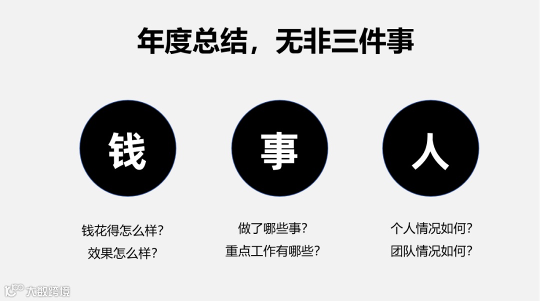 另外,从部门业务的角度来看,获客渠道有什么变化?获客打法上有什么新的变化?打算要做什么事情?要花多少钱?这钱给到你之后,你打算怎么把它花掉?预估能给公司带来什么等等,这些都是要写在年终总结里的。