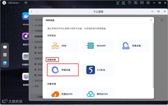 (2)在网盘挂载中选择要挂载的网盘,例如:阿里云盘