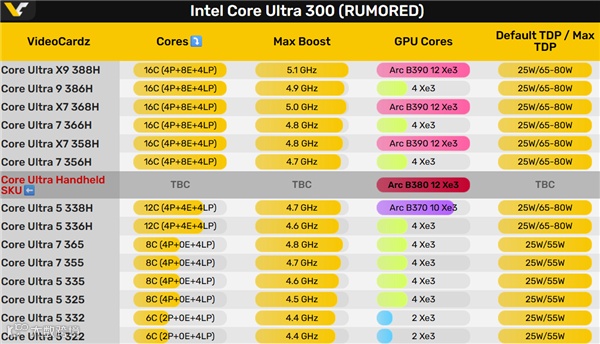 锐炫B380最特殊,是专门面向游戏掌机的,看来Intel也很想分一杯羹。