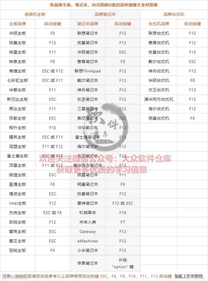 (1)使用临时启动菜单,重启电脑在出现品牌 Logo 的瞬间,按下对应的启动菜单快捷键,下面是相关的对照图表,在弹出的启动菜单里选择:USB / UEFI USB / UEFI: XXX USB,系统将从 WinPE 启动进入 PE 桌面;