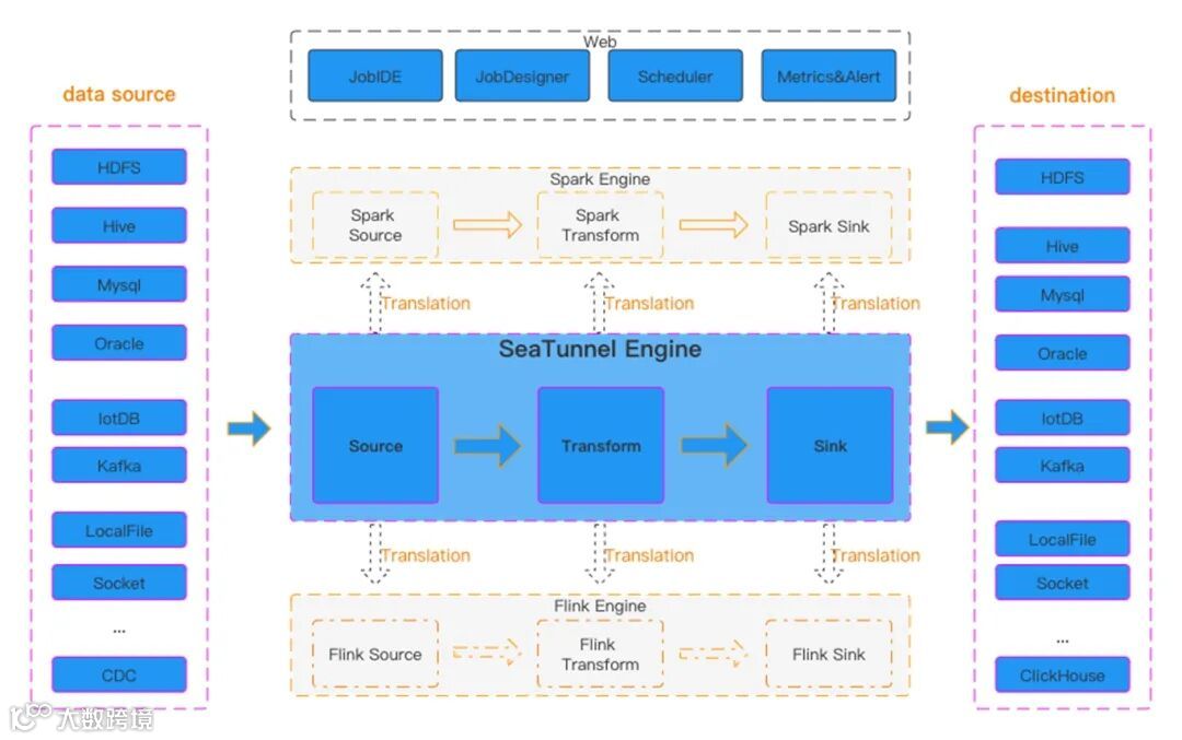 多引擎支持:SeaTunnel默认使用SeaTunnel引擎(Zeta)进行数据同步。 SeaTunnel还支持使用Flink或Spark作为Connector的执行引擎,以适应企业现有的技术组件。 SeaTunnel 支持 Spark 和 Flink 的多个版本。 -