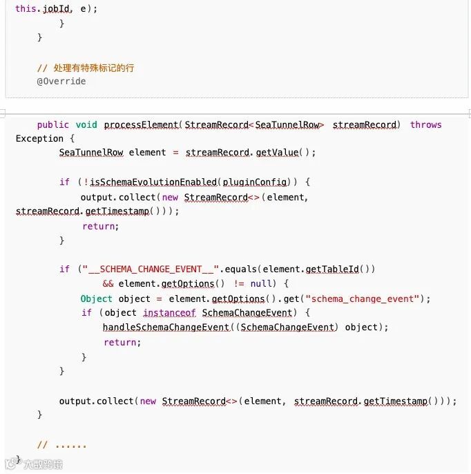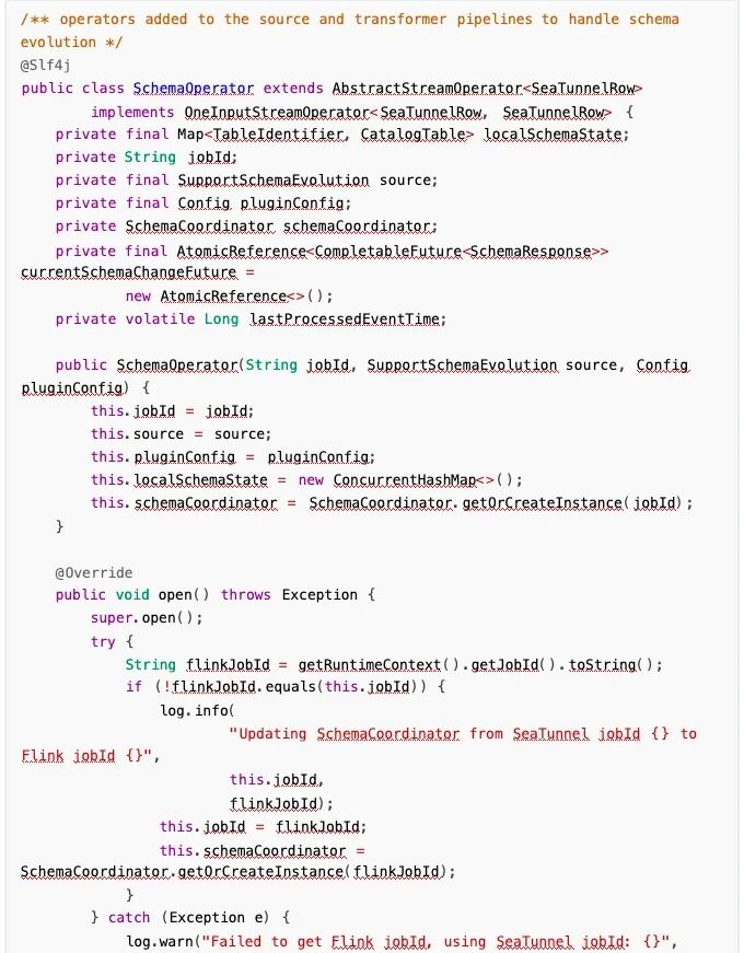 ✅实现 SchemaOperator 算子,检测被 source 端发出的变更事件并处理,支持变更事件透传到下 游。