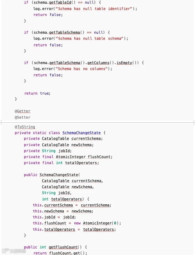 之前我在实现的时候, FlushEvent 内部包裹着 SchemaChangeEvent,在 FlushData 的同时就把表 变更了,这样有一个问题就是职责不清晰,比较混乱,之后就把职责分开,刷写数据就只刷写数据,之 后上报协调器,再次发送变更事件,真正进行变更:
