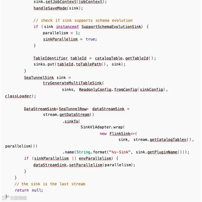 ✅在 source 和 transform 之间动态插入算子,如果检测到实现了 SupportSchemaEvolution 的类, 并且开启了 schema evolution 的配置,则插入SchemaOperator。