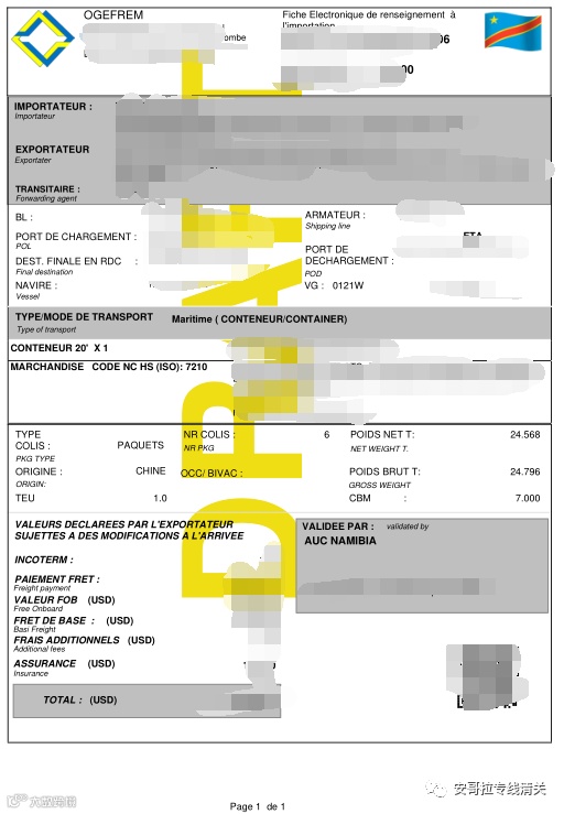 刚果金需办理FERI证书,刚果布则需申请ECTN(电子舱单跟踪号)[k]。