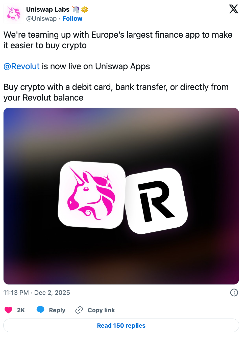 Uniswap 与 Revolut 连接,使加密货币支付更加直接