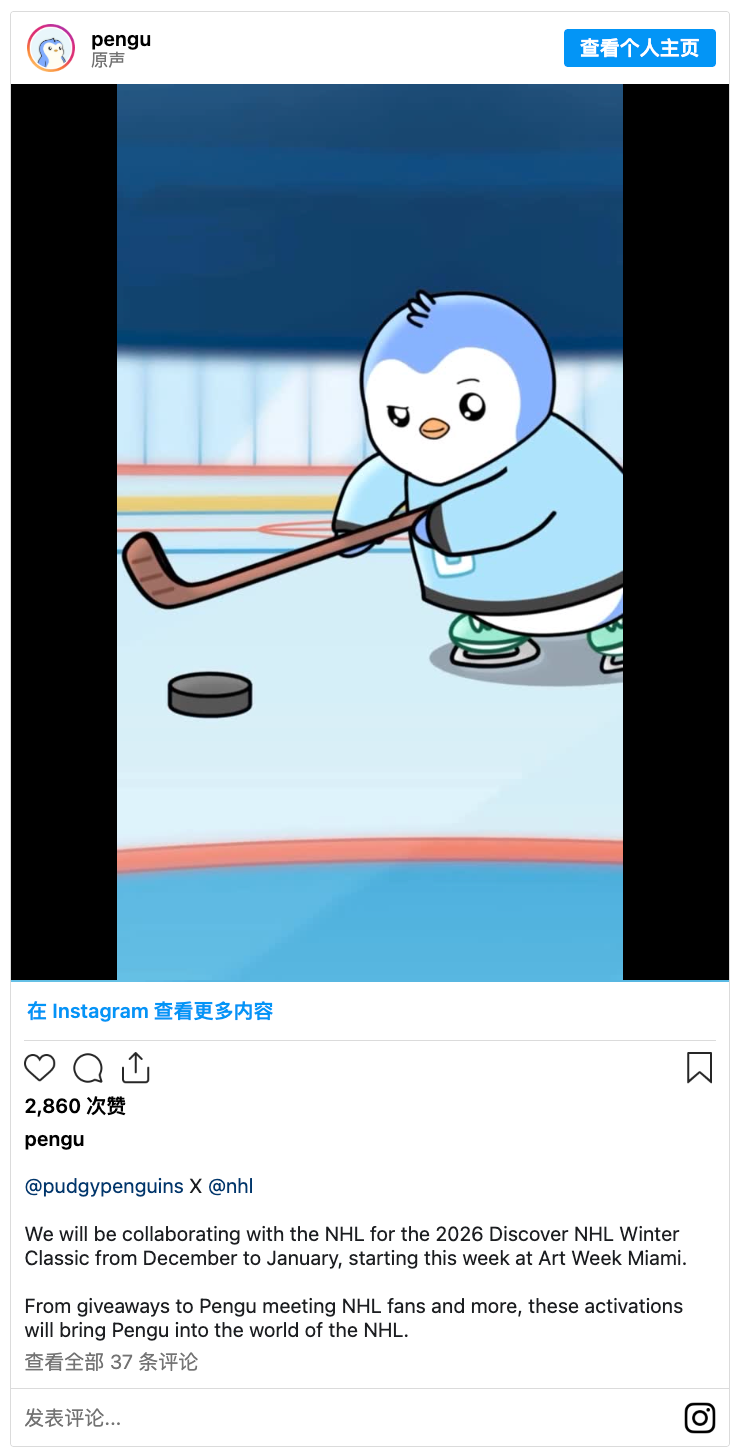 该品牌的影响力扩展到了 Its Sugar 门店的接管,以及与国家冰球联盟(NHL)的全新合作,这将使 Pudgy Penguins 在 Discover 赞助的 2026 年 NHL 冬季经典赛期间成为焦点。