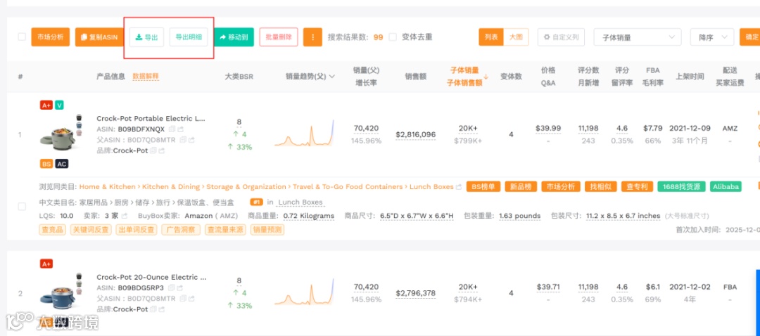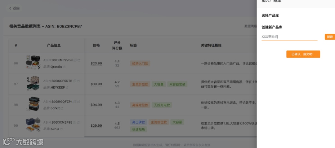 此外,还可以在产品库选中所有ASIN,生成定制化的市场分析报告。