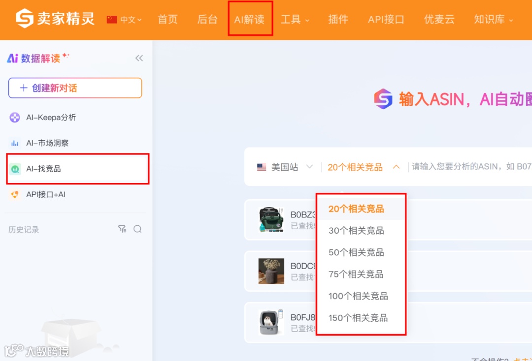 ➡️Step 1:大家可以根据自己的需求选择需要的竞品数量,然后输入自己的ASIN