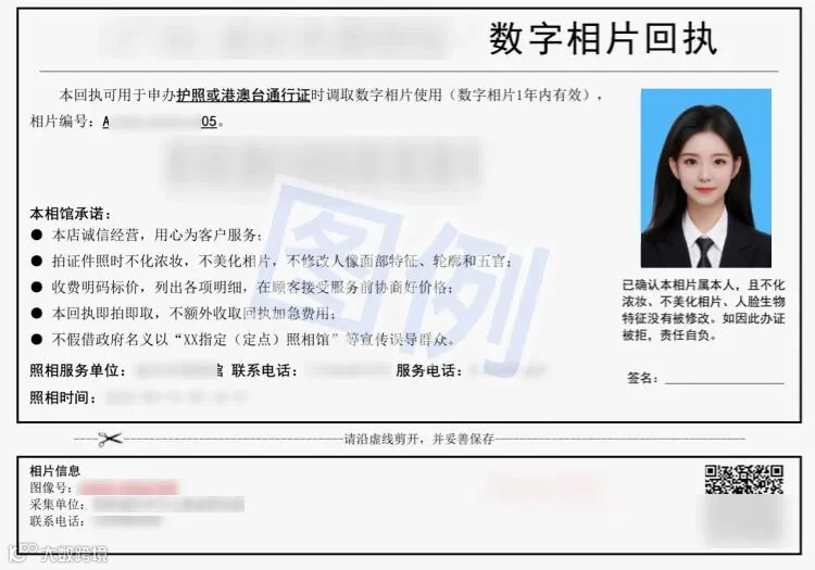出入境证件数字相片采集回执(可以现场拍,也可以通过下方小程序用手机拍好)