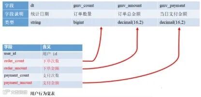 用于存储用户的互动、消费等行为数据,包含各类用户活动信息,如评论、点赞、收藏、分享、GMV等字段。每张宽表大约包含60-200个字段,满足多维度的用户分析需求。