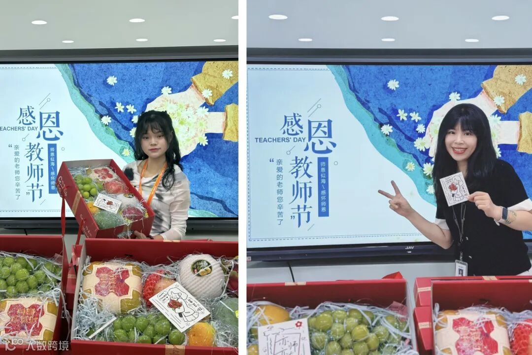 内江职场也为老师们准备了应季的水果礼盒,还有向日葵花束...