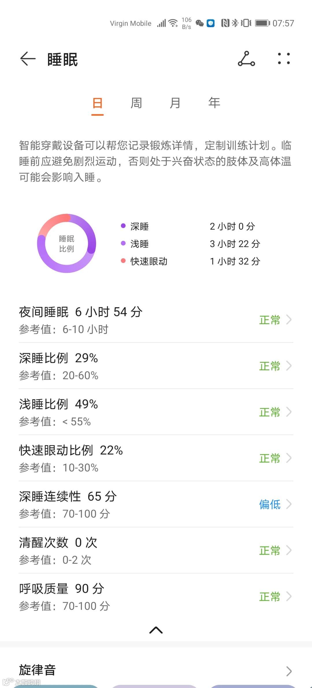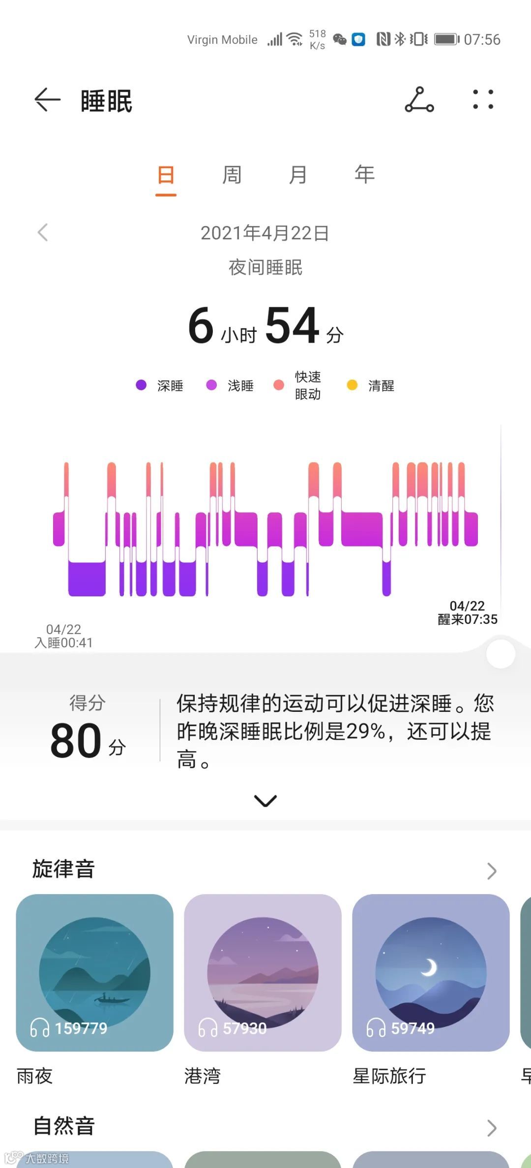 搭载HUAWEI TruSleep™ 2.0算法,华为Band 6可精准识别深睡、浅睡、快速眼动(REM)及觉醒状态,甚至支持对睡眠呼吸暂停风险进行评估[k]。每日早晨,用户可通过华为运动健康App获取详细的睡眠质量报告,实现科学睡眠管理[k]。