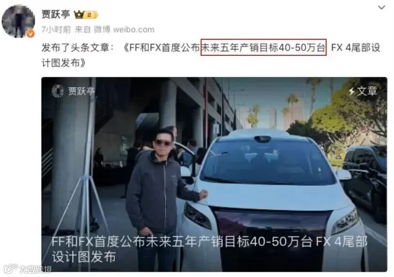 就在本月初,贾跃亭还在个人社交平台发布长文,喊出未来五年卖出40-50万台的目标。