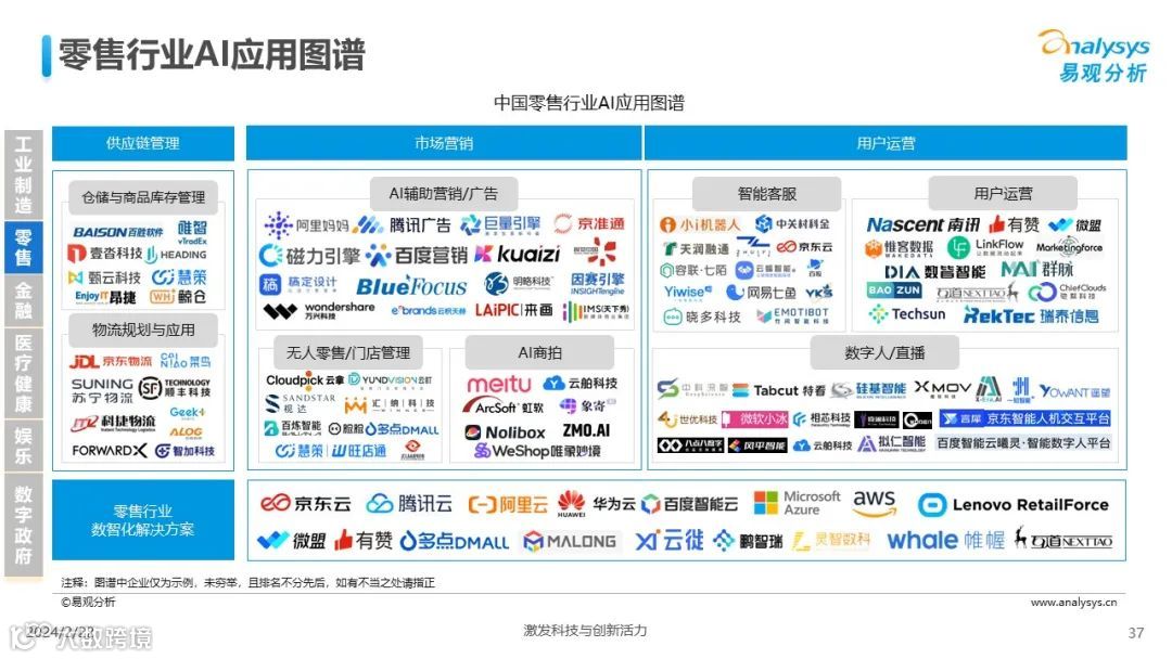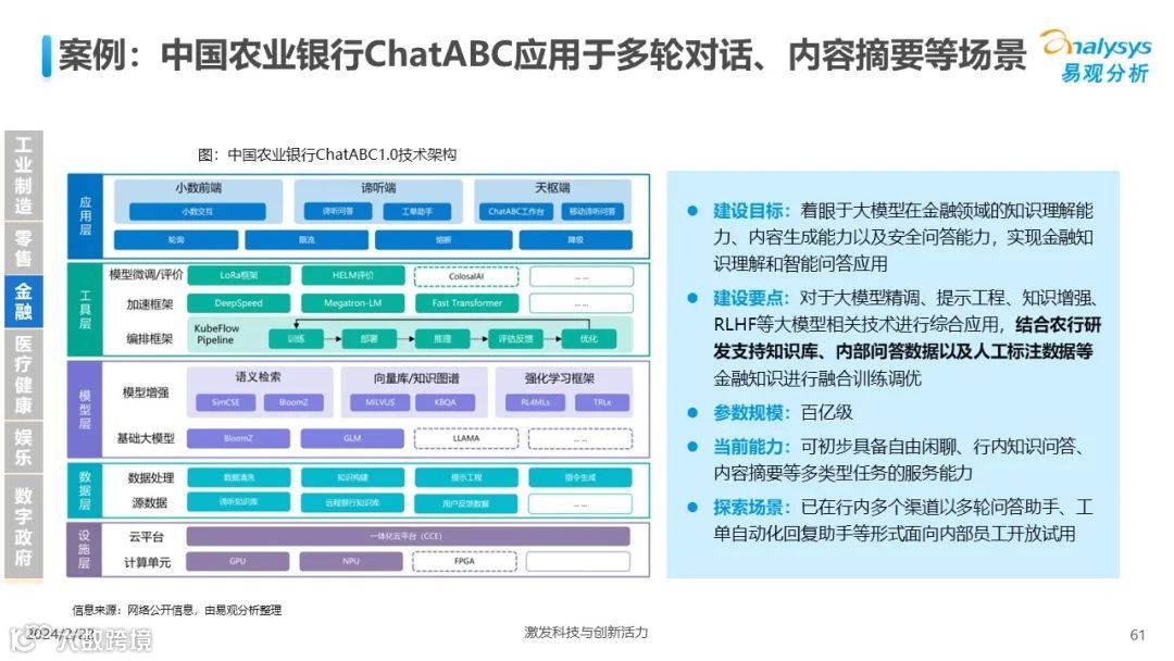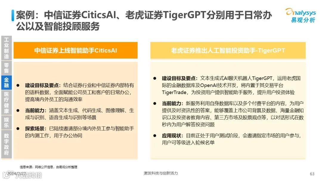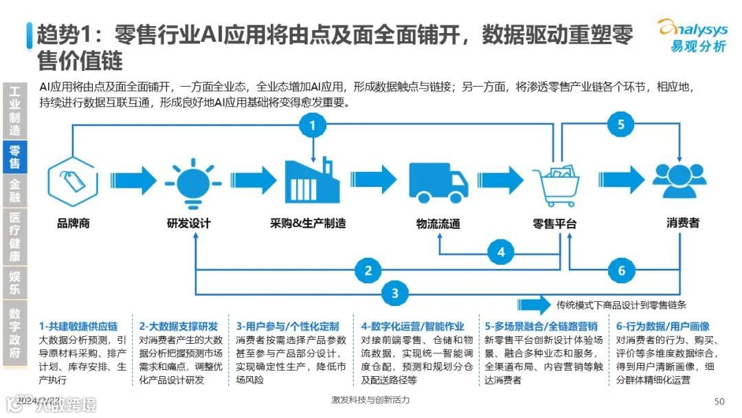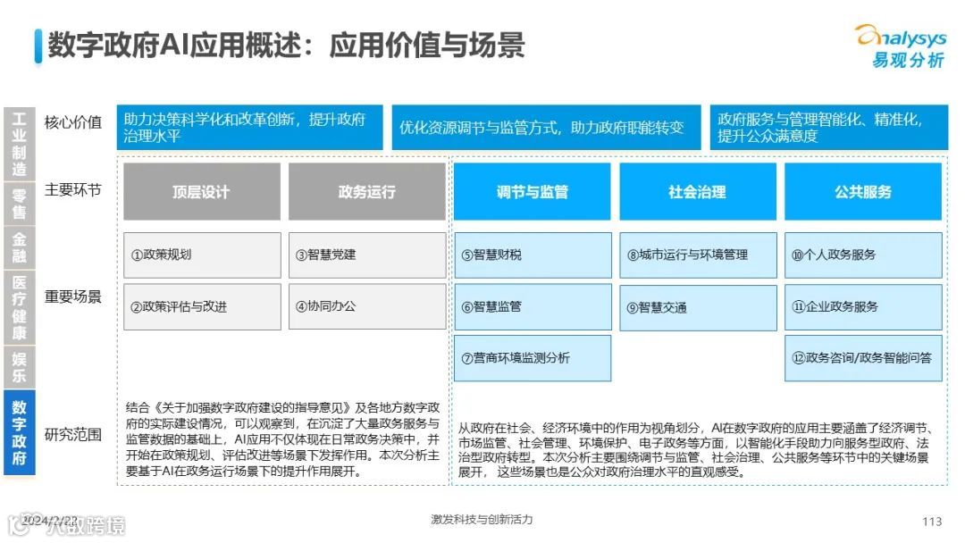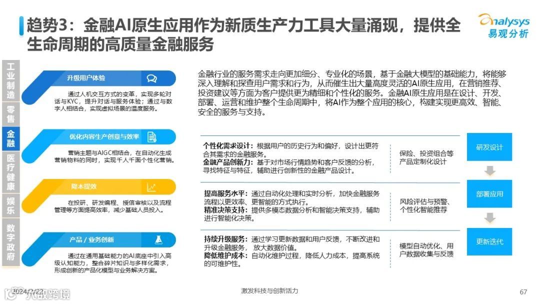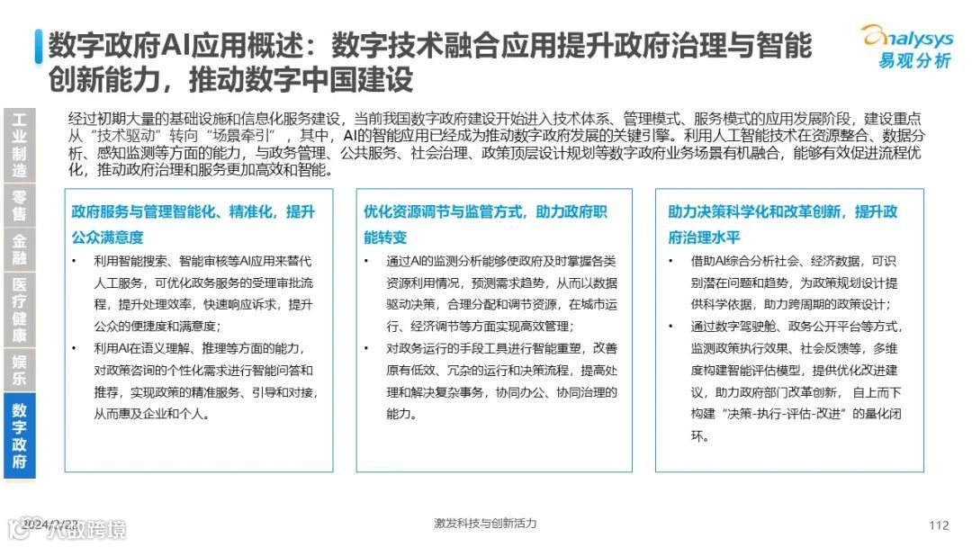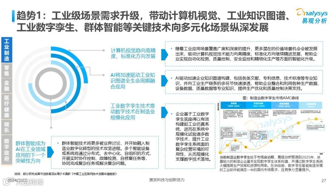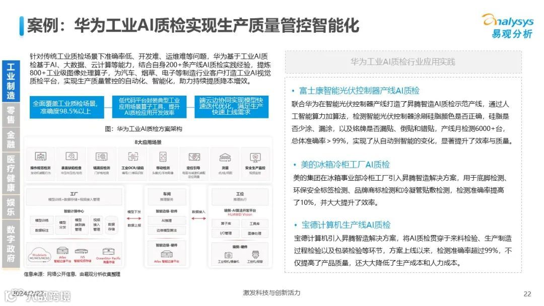 易观分析:人工智能发展进入生成式人工智能时代,大语言模型所呈现的“涌现”能力,正在推动人类社会向AGI的方向持续探索,这将贯穿科技公司与研究机构相当长周期的关注焦点。基于对人工智能技术发展与行业应用情况的长期跟踪与研究,《中国人工智能产业应用发展图谱2023》针对主要行业AI应用发展背景、关键价值、挑战和趋势,以及核心环节/场景的典型案例进行深入分析,全面展开产业AI智能化应用全景。