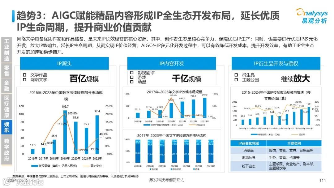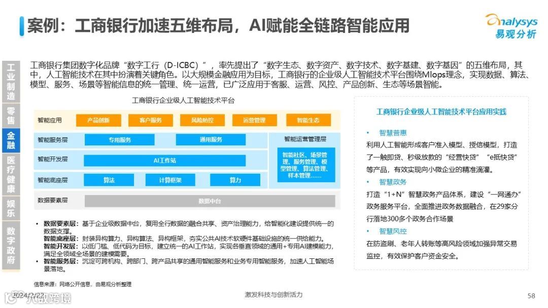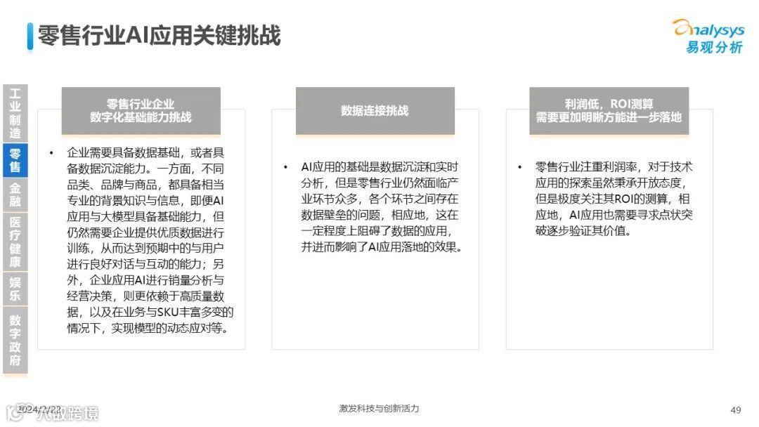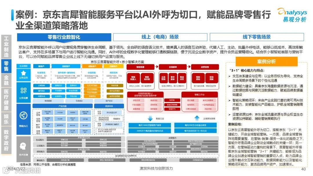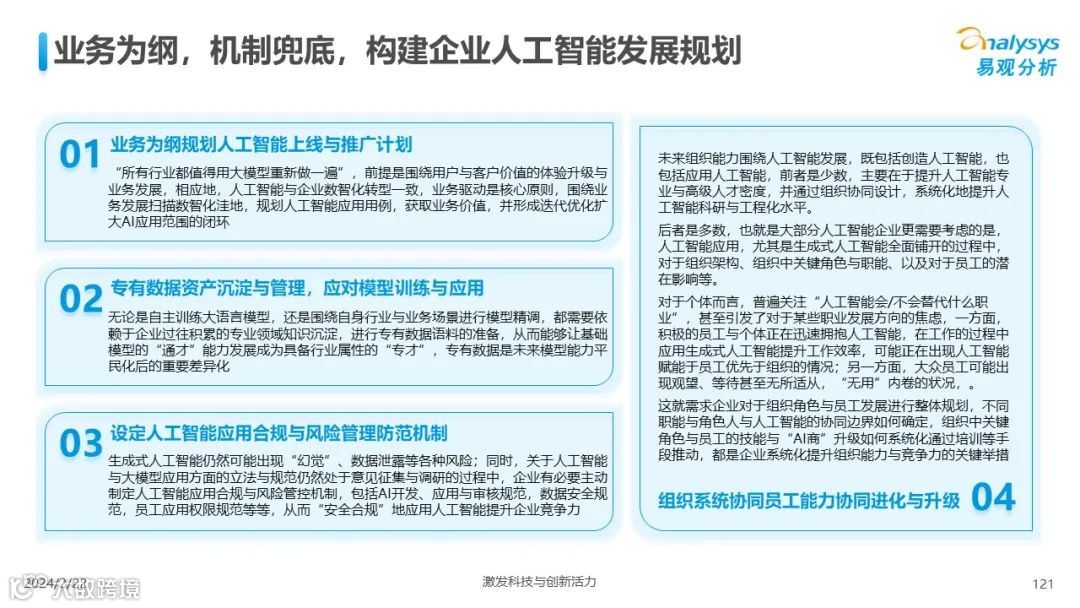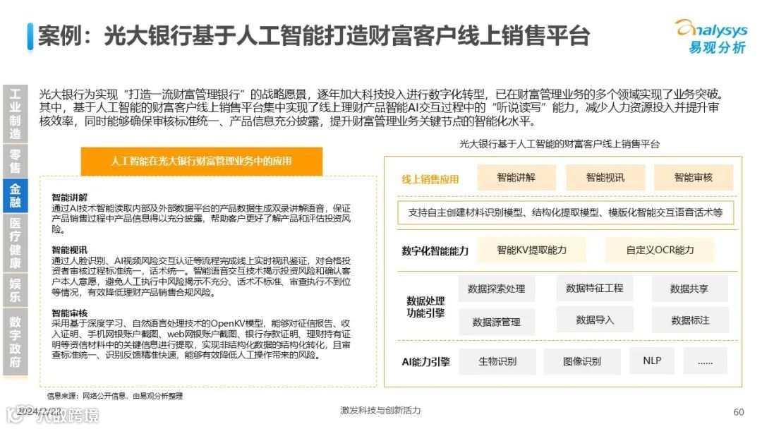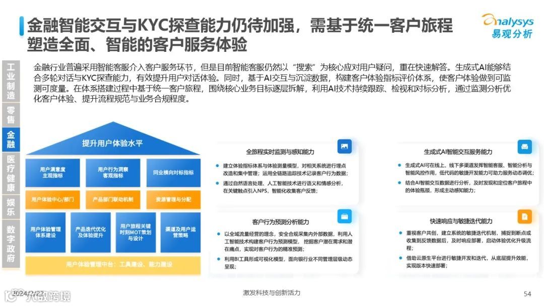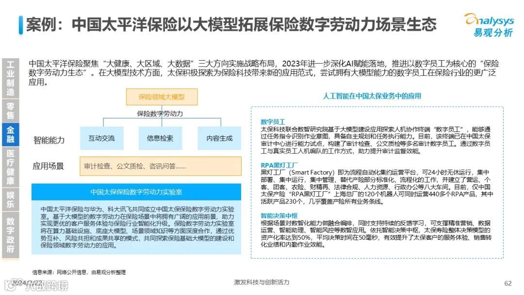 易观分析:人工智能发展进入生成式人工智能时代,大语言模型所呈现的“涌现”能力,正在推动人类社会向AGI的方向持续探索,这将贯穿科技公司与研究机构相当长周期的关注焦点。基于对人工智能技术发展与行业应用情况的长期跟踪与研究,《中国人工智能产业应用发展图谱2023》针对主要行业AI应用发展背景、关键价值、挑战和趋势,以及核心环节/场景的典型案例进行深入分析,全面展开产业AI智能化应用全景。