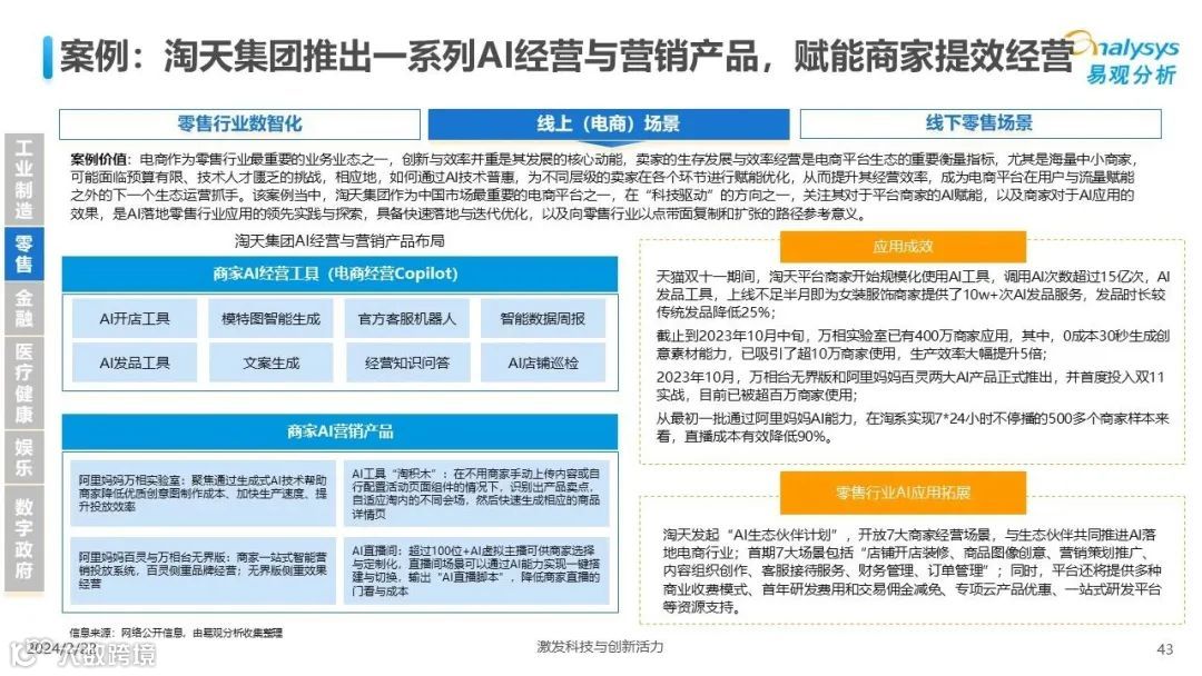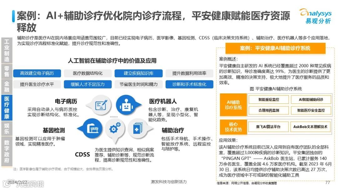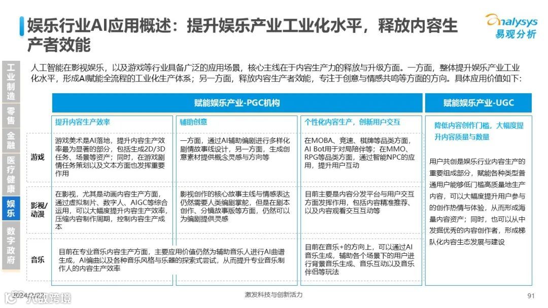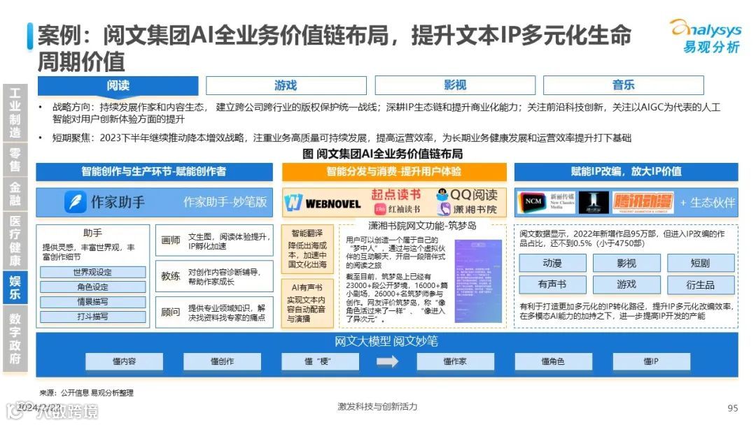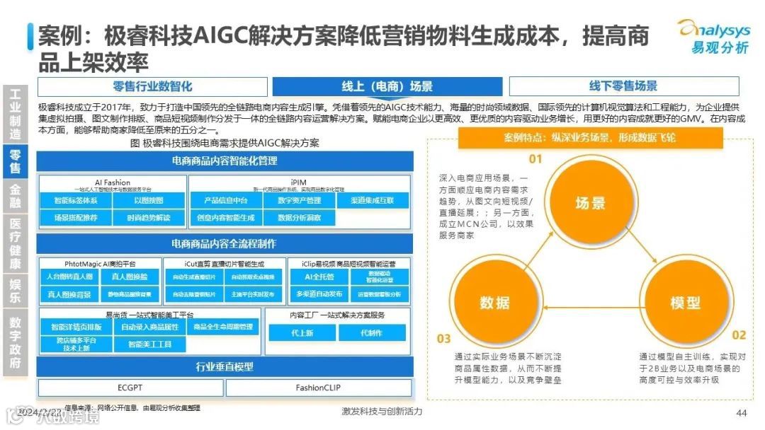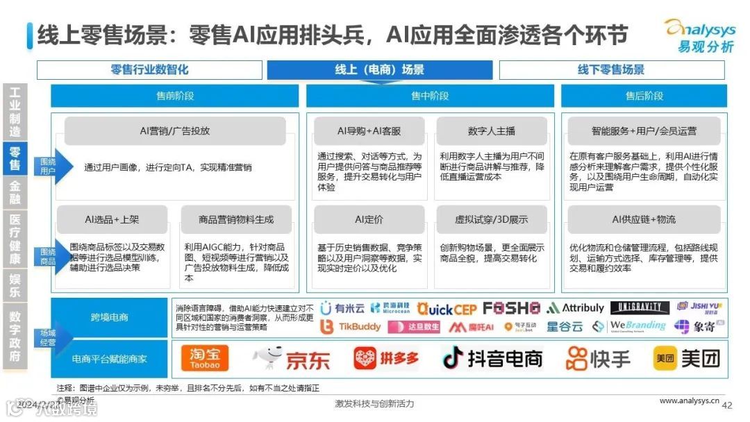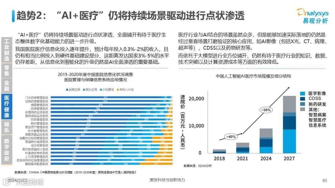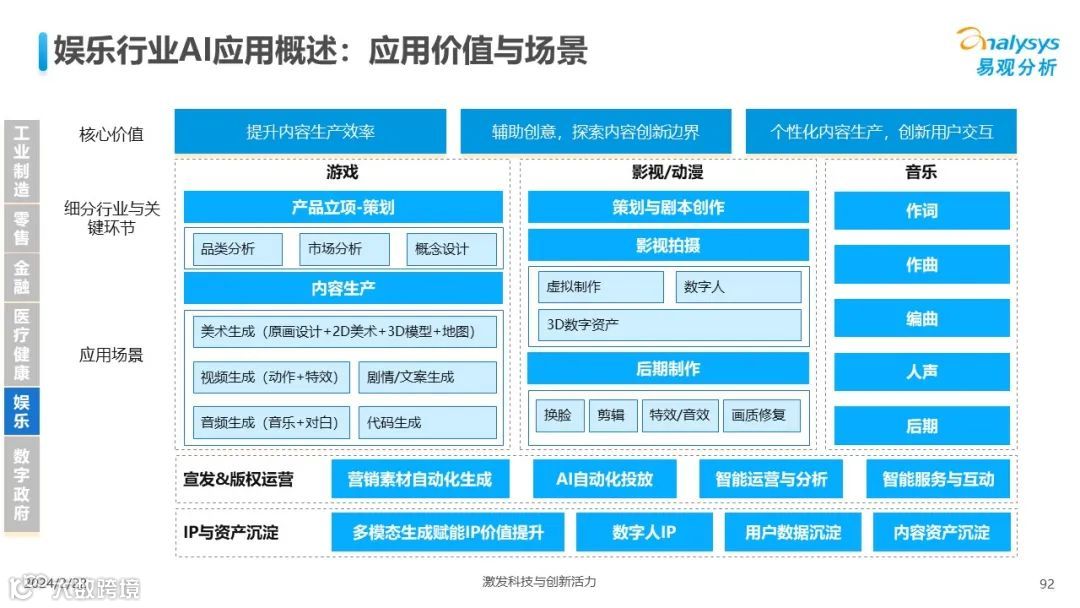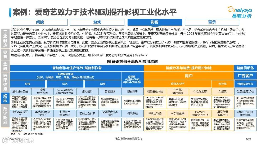 易观分析:人工智能发展进入生成式人工智能时代,大语言模型所呈现的“涌现”能力,正在推动人类社会向AGI的方向持续探索,这将贯穿科技公司与研究机构相当长周期的关注焦点。基于对人工智能技术发展与行业应用情况的长期跟踪与研究,《中国人工智能产业应用发展图谱2023》针对主要行业AI应用发展背景、关键价值、挑战和趋势,以及核心环节/场景的典型案例进行深入分析,全面展开产业AI智能化应用全景。